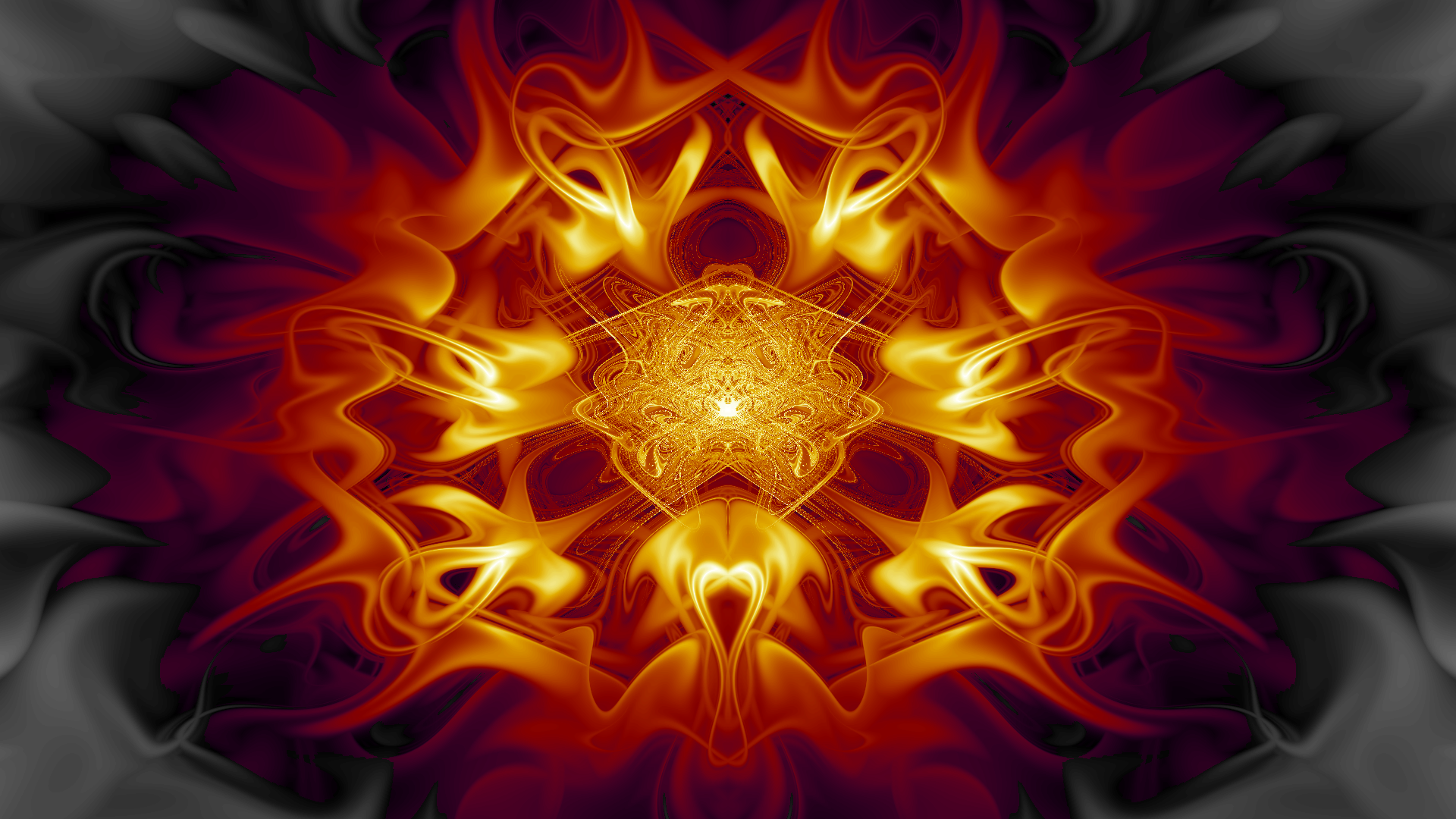 Notice the contrasts. Contrasts between the smooth edge and the intricate center, between slow movements and fast explosions, between stable figures and fleeting shapes. The movement fits with any music.